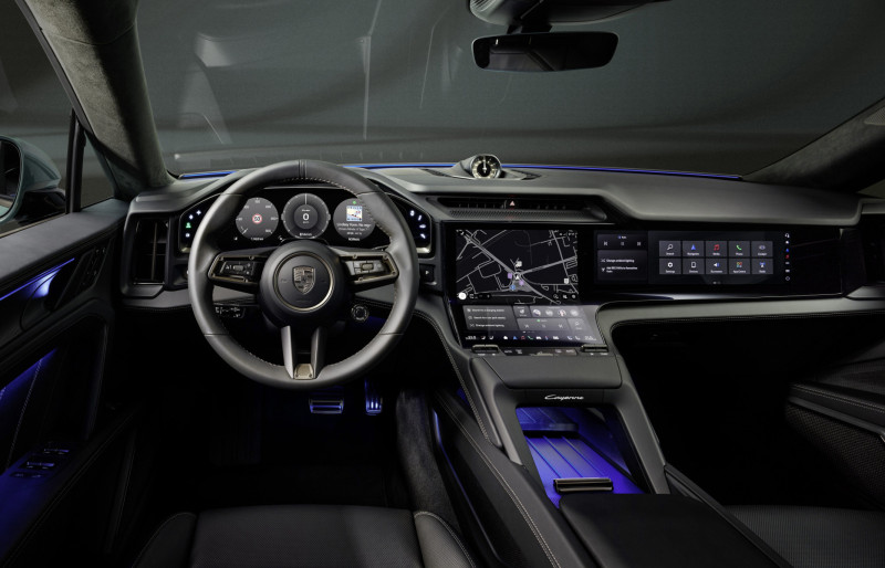 De Cayenne transformeert het interieur in een belevingsruimte en combineert het sportieve DNA van Porsche met digitale innovatie. Het centrale middelpunt in het interieur is het nieuwe Flow Display, het grootste scherm ooit geïnstalleerd in een Porsche. Het is elegant gebogen, naadloos geïntegreerd en intuïtief te bedienen. Nieuwe comfortfuncties zoals de elektrisch verstelbare achterbank, oppervlakteverwarming en Mood Modes verbeteren de rijervaring aanzienlijk. Tegelijkertijd biedt een aanzienlijk grotere verscheidenheid aan kleuren, materialen en accenten vrijwel onbeperkte mogelijkheden op het gebied van personalisatie. “We wilden de typische Cayenne eigenschappen, de nieuw ontwikkelde schermoppervlakken en de functies van de nieuwe ‘Porsche Digital Interaction’ combineren tot een harmonieus totaalpakket”, licht Markus Auerbach, Director Interior Design bij Style Porsche, toe.