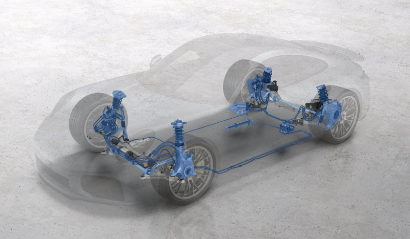 De merkbare sprong in prestaties is het resultaat van een fijn afgestemd totaalpakket bestaande uit aandrijflijn, aerodynamica en onderstel. De stroomvoorziening voor de actieve elektrohydraulische rolstabilisatie (ehPDCC) is speciaal ontwikkeld voor voertuigen met de nieuwe, riemloze boxermotor en is verder geoptimaliseerd voor de nieuwe 911 Turbo S. Het verhoogt zowel de wendbaarheid bij lagere snelheden als de stabiliteit bij hoge snelheden, wat een aanzienlijke bijdrage levert aan de verbeterde prestaties en het comfort. Het elektrohydraulische PDCC-systeem is standaard op de 911 Turbo S.
