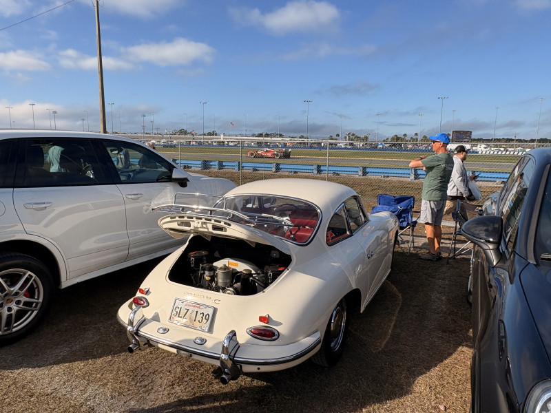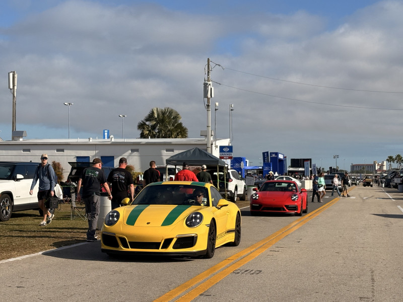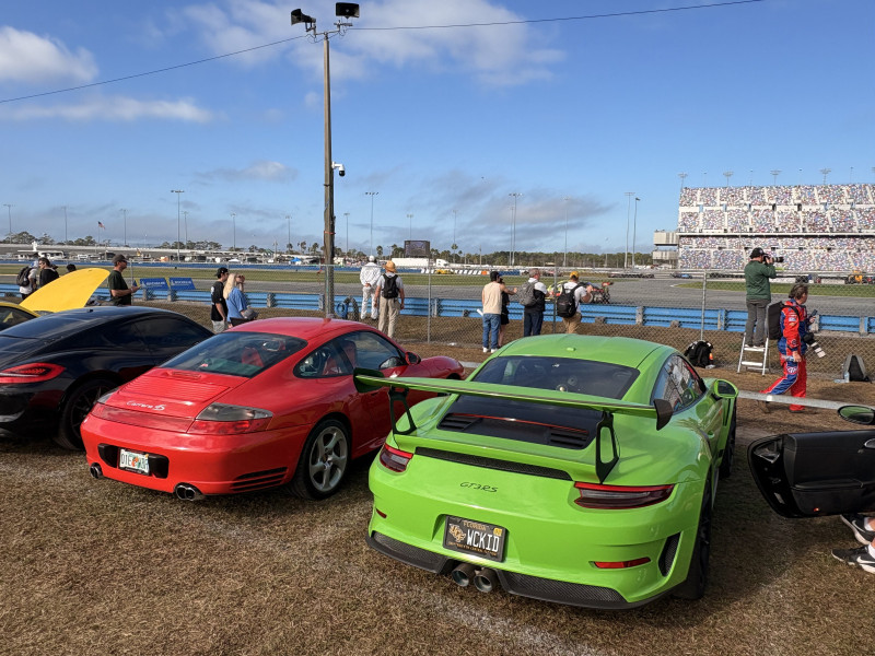 Porsche is al sinds tientallen jaren succesvol in Daytona (https://nieuws.porsche.nl/porsche-als-meest-succesvolle-fabrikant-van-start-in-de-24-uur-van-daytona/) en heeft er ook vele fans. De Porsche Club of America, met ruim 100.000 leden verreweg de grootste Porsche club ter wereld, biedt zijn leden de mogelijkheid om bij de race aanwezig te zijn. “Die kaarten zijn meestal binnen een dag uitverkocht”, vertelt secretaris Vu Nguyen. Clubleden kunnen parkeren op een eigen parkeerplaats op het binnenterrein van het circuit, de “Porsche Platz”. Moderne Cayenne en Macan modellen zijn er in de minderheid, de meesten komen met 911’s, maar ook met oudere modellen als 914 of zelfs 356.