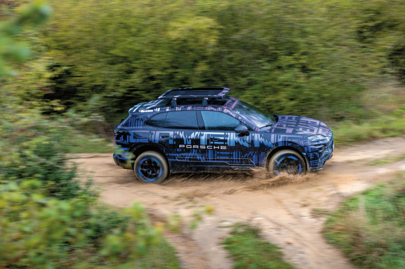 Terug in Leipzig stuurt Timo Kluck de auto met flair de bocht in, ondersteund door achterasbesturing en het geregelde differentieelslot. Ondanks de hoge zitpositie is de illusie van een klassieke sportwagen compleet. Na het circuit volgt het offroad-parcours. Hier transformeert de sportwagen in een terreinwagen die steile hellingen en zwaar terrein moeiteloos overwint. Het Porsche Traction Management (PTM) verdeelt het koppel binnen vijf milliseconden volledig variabel per wiel.